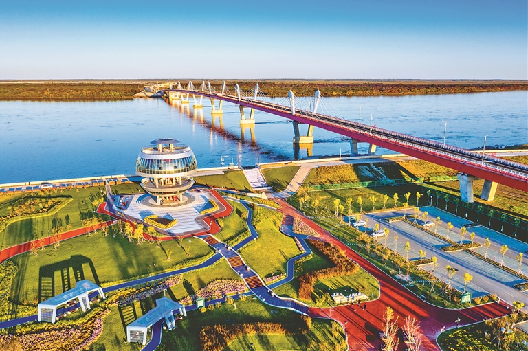 随着纳入“十四五”首批国家陆上口岸型物流枢纽城市,黑河市融入“一带一路”的步伐加快,中俄东线天然气管线、黑河—布拉戈维申斯克黑龙江大桥项目建成运营,北黑铁路改造升级、世界首条跨境索道、跨境物流枢纽等项目开工建设;哈尔滨—黑河—叶卡捷琳堡国际邮路开通,立体化多元国际大通道功能更加完善。