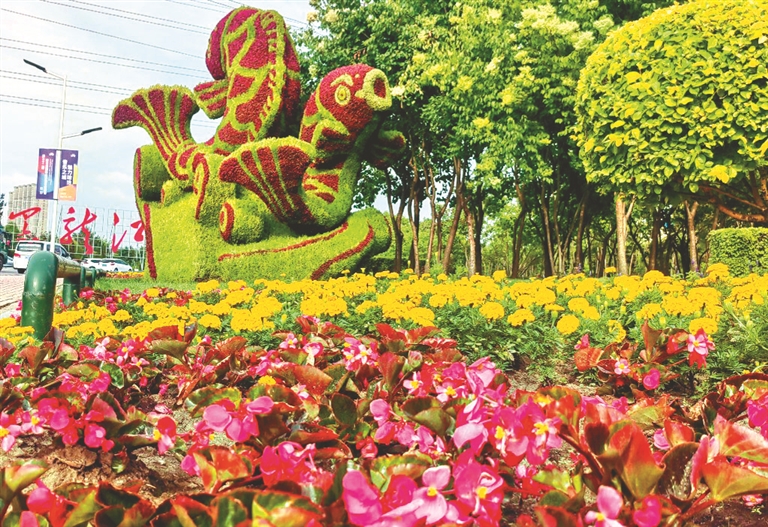 近一段时间,哈尔滨市加大绿化美化力度,街头、公园、广场等地建设了许多用五色草装饰的立体绿色景观。这些景观造型独特,将整座城市装扮得更加美丽。