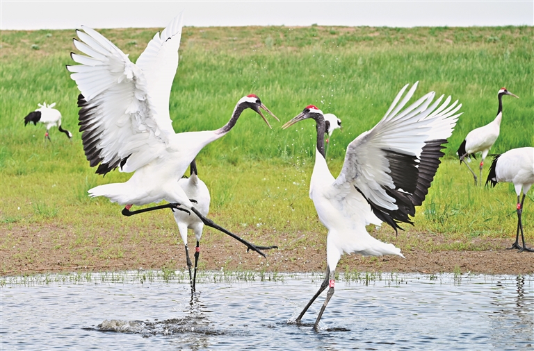 夏季的齐齐哈尔扎龙国家级自然保护区,仙鹤湖碧波荡漾、水草丰盛,波光栈道微风清凉,赏湿地观鹤舞成为游客来齐齐哈尔游玩观赏的必选之旅。在这里,可以看到丹顶鹤野化训飞,人鸟共生自然和谐……好一幅“荻花不染尘埃色,野鸟闲鸣天籁声”的醉人画卷。本报记者 荆天旭摄
