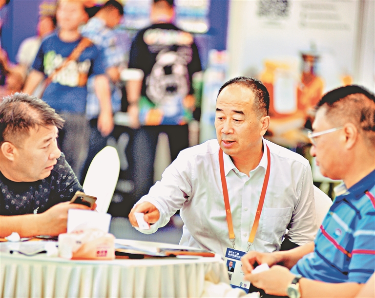 洽谈。本报记者 苏强摄