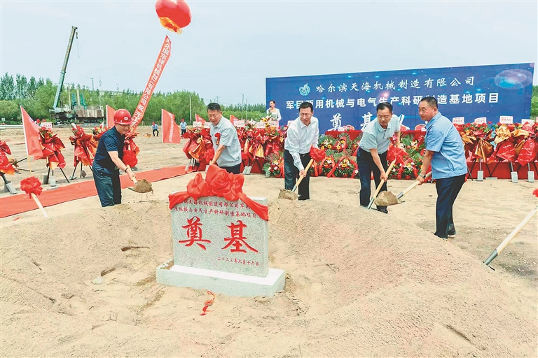 本报讯(高琳 记者薛婧)近日,哈尔滨天海机械制造有限公司军民两用机械与电气生产科研制造基地项目开工奠基。