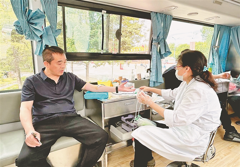 党员干部参加义务献血志愿活动。