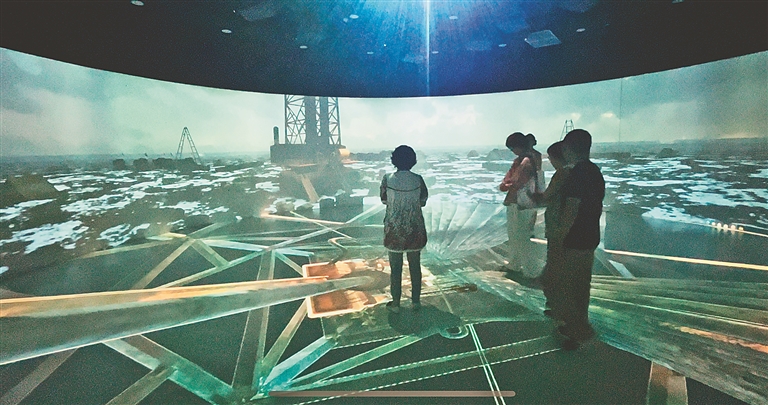 在体验展示区,人们仿佛走进了宇宙飞船,随着一扇又一扇“舱门”开启,通过轨道投影、精准投影、裸眼3D、元宇宙VR等数字化技术展现出了大庆的风采,带给游客全新的体验。