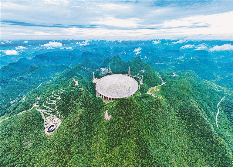6月23日拍摄的“中国天眼”全景(维护保养期间拍摄,无人机照片)。