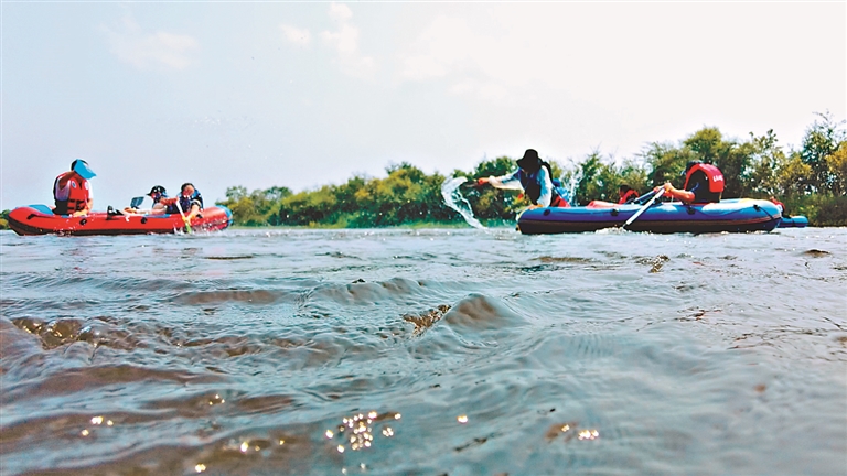 龙头山脚下、法别拉河上,地处“醉美331公路”沿线、占地面积4万平方米的龙头山寨,入夏以来吸引了大批游客,人们在19℃的青山绿水中畅享清凉。进入夏游模式后,上马厂镇西山后村龙头山寨景区客流量大幅增长,龙头山寨漂流经理姜浩然介绍,天气晴好的时候,每天人流量可达150多人,从上午九点半到下午四点,游客基本不断档。