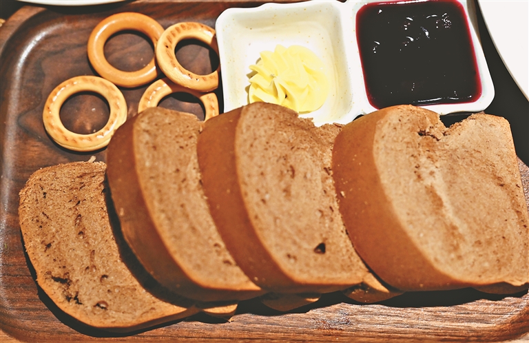 一碗红菜汤、一片黄油大列巴、一串高加索风味烤肉、一杯鲜酿格瓦斯……