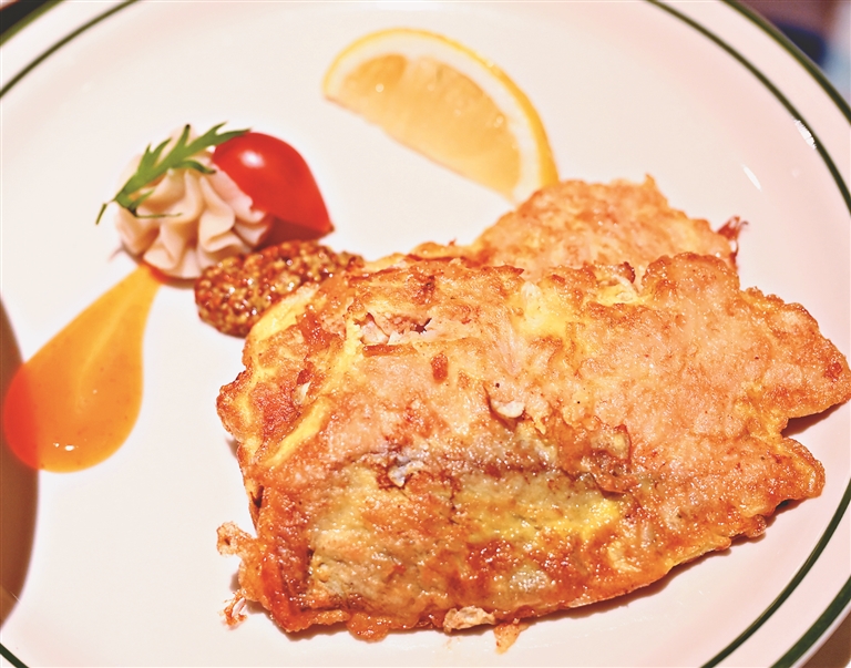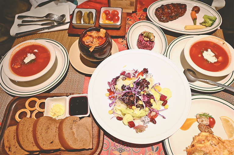 说话间,美眸子沙拉端上餐桌,蛋黄、蛋清、胡萝卜、金枪鱼,一勺下去四种味道尽享,层次感分明。哇!网友推荐的沙皇芝士带骨牛排来喽,香气四溢,鲜嫩多汁,吃上一口嘎嘎带劲儿。“这是我在圣彼得堡的俄罗斯国家图书馆里查资料,挖掘出来的俄式老菜。”多年来,滕国栋循着俄式西餐技艺,着力还原俄式老菜。