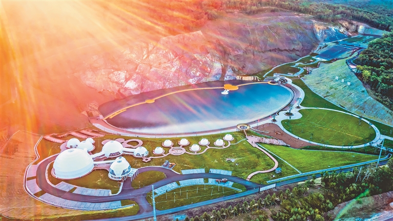 据了解,该景区原址为废弃的通泰源页岩矿,山体裸露,植被凋敝。在推进问题整改的过程中,宝清县发现该区域水体受矿物质影响呈现出珠宝般的迷人色彩——蒂芙尼蓝,对此,创新提出了“因势利导、变废为宝”“因地制宜、化腐朽为神奇”的生态发展理念,将生态功能修复和资源开发利用有机结合,把满目疮痍的矿坑及周边区域,打造成了集野外露营、婚纱摄影、卡丁车运动、森林康养等功能导向于一体的新兴郊野旅游度假目的地。今年上半年,翡翠湖接待游客3.5万人次,旅游收入60余万元。