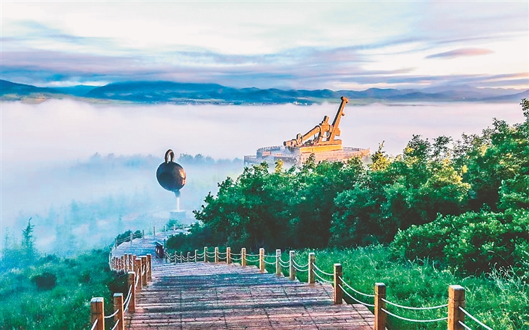 彩云岭文化旅游民俗景区位于小城子镇太平村,是双鸭山市及周边最受欢迎的旅游景区之一,“垦荒犁”“天壶”等特色景观已成为知名的“网红打卡地”。“上半年,彩云岭景区接待游客15万人次,旅游收入200多万元,同比增长15%。”宝清县小城子镇党委书记王洪玉说。