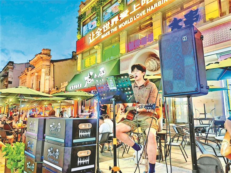 华灯初上,位于道里区的河山街迎来了一天中人气最旺的时刻。排队等待的食客、餐桌前的欢笑声、空气中弥漫的各种美食香味,以及电子支付到账的提示音……
