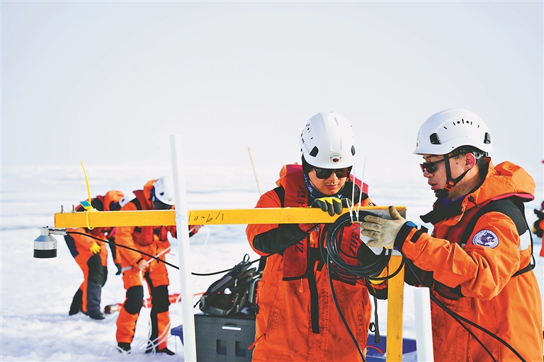 中国极地研究中心(中国极地研究所)副研究员、大洋队海冰环境组组长林龙介绍,海冰综合调查作业是此次北冰洋科考的重要环节之一,主要任务包括冰基浮标布放、海冰采样、冰上试验三个部分。