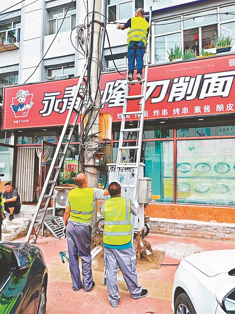 作为细部治理工作的“序曲”,为改变一些居民小区内各式电线杂乱不堪的现象,细部治理指挥部联合齐齐哈尔供电公司、各运营商等对楼院“飞线”进行拉网式排查,各自认领本单位的“飞线”,按照安全用电标准,合理布放,分区分段集中规范治理,对已失效的线路进行捆绑、剪线处理,重现整洁有序的面貌。