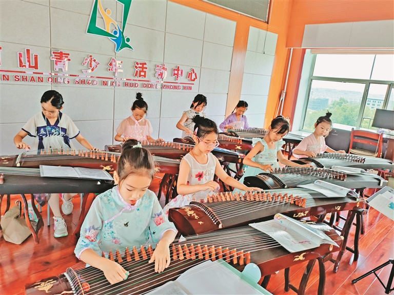 今年暑假,托管班又新增了古筝、英语、诵读配音等课程。第一期古筝社团的学员来自鹤岗市各小学的一至六年级小学生,通过理论讲解、教师示范、学生互助练习等方式,孩子们渐渐入门,已能基本掌握“勾”“托”“抹”技法。“下一阶段,孩子们将学习花指、上滑音、下滑音、摇指、大撮小撮等演奏手法。”古筝老师说。
