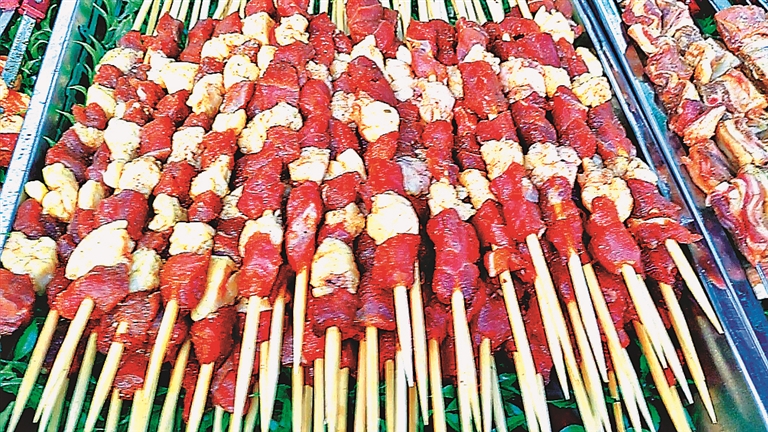 待加工烤制的小串。