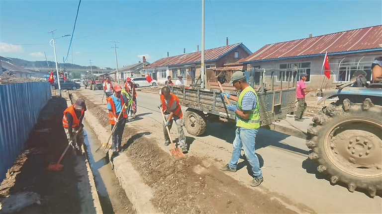 19日,在尚志市老街基乡基丰村以及一面坡镇镇北村和万山村,该市市级四个班子、包保单位和当地政府工作人员500余人手持铁锹除淤泥,帮助受灾农民整理院落、菜园,清理村屯通村路、巷道、路边沟,帮助受灾农民重建家园。