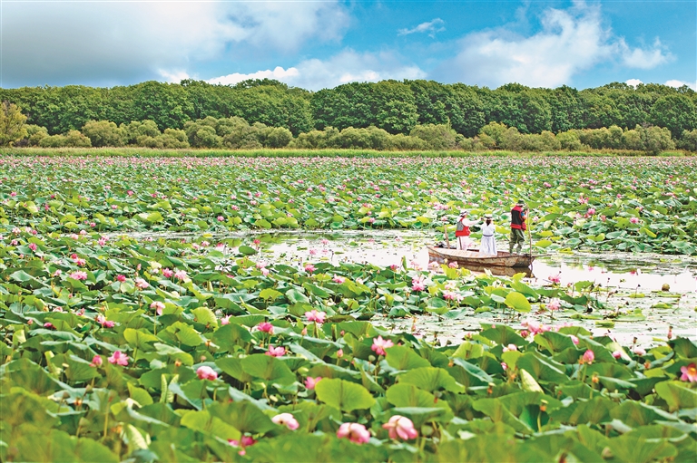 月牙湖万亩寒地荷花。 刘晶摄