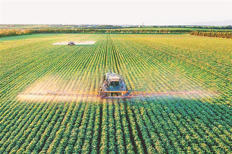 作为垦区最大的马铃薯种植基地,目前,北大荒集团克山农场有限公司的6万亩马铃薯已经进入茎块膨大期,是品种成熟和淀粉积累的关键阶段,同时也是晚疫病高发期。为了给马铃薯丰产丰收打下坚实基础,连日来,克山农场抢抓晴好天气,在9个管理区同步开展机车作业,主要喷施叶面肥和马铃薯晚疫病防治药剂,促进马铃薯茎块增长和各类品种成熟,有效避免因晚疫病发生造成的减产和损失。