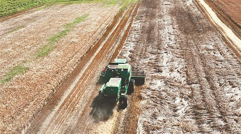 爱辉区地处中高纬度,四季分明,雨热同季,降水适量,小麦生育期间光照长,昼夜温差大,有利于小麦通过春化阶段与光照阶段健壮生长,同时,有机质含量达到5%以上的土壤成分,为小麦的优质高产奠定了基础。预计爱辉区今年小麦机收作业,将在3天之内全部完成。