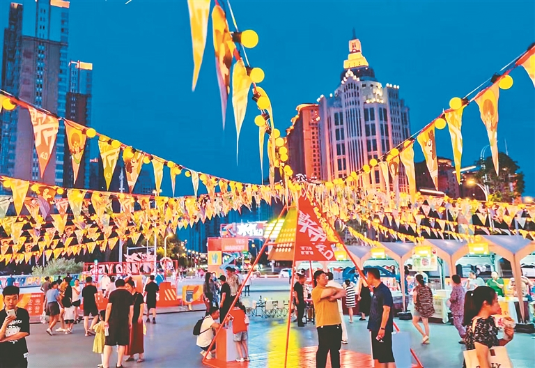 松北万象汇“野市4.0市集”日前开市。哈尔滨新区今年第四届夜市以“露营风”为主题,市集上有特色小吃、手工艺品、家居用品等,商品种类丰富,经济实惠。本报记者 孙海颖摄
