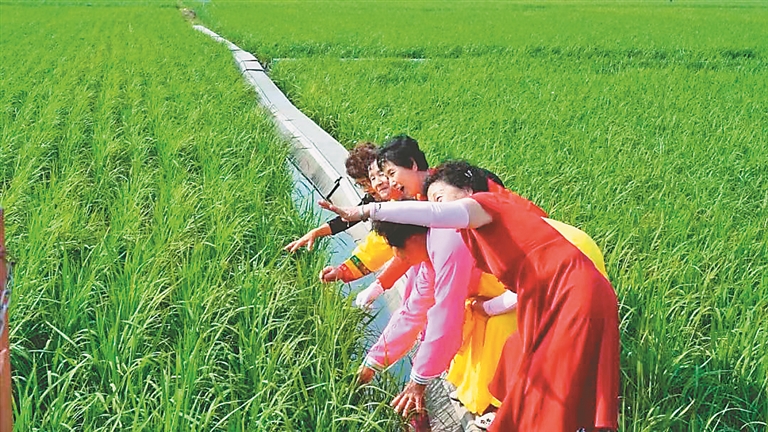 八月,水稻正处于灌浆期,站在“我在主星有亩田”认养地块的田埂一眼望去,1000多亩的成片水稻郁郁葱葱,满眼碧绿,微风吹来,稻禾泛起层层碧波,绘就了一幅丰收在望的田园画卷。