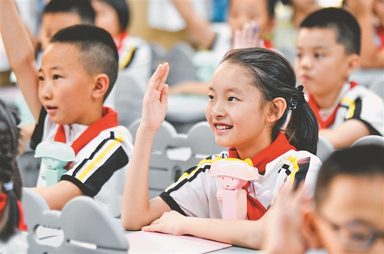 8月28日,在新疆教育学院实验小学,四年级学生在上课。