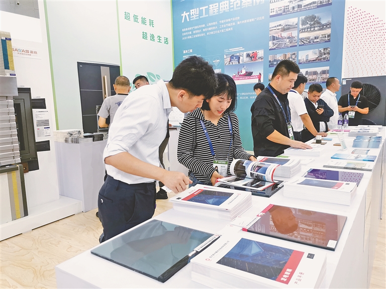 8月29日上午,第六届新博会超低能耗建筑材料展区客商云集。展区内,佳木斯中建材光电材料有限公司的多款发电玻璃产品吸引了不少客商驻足咨询。