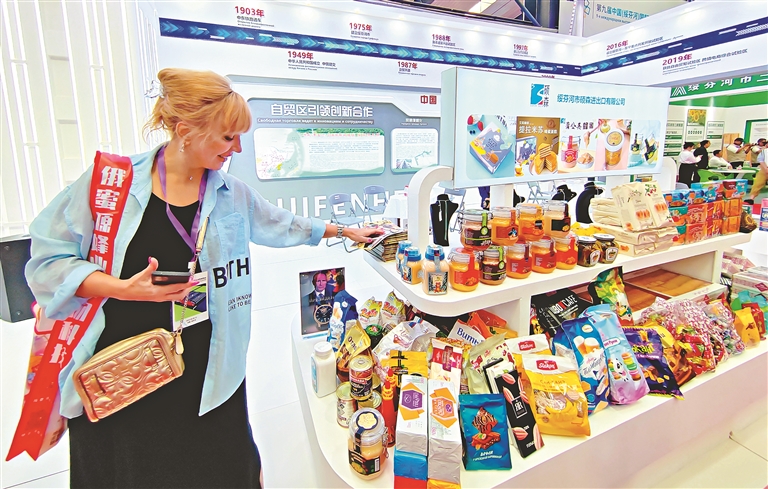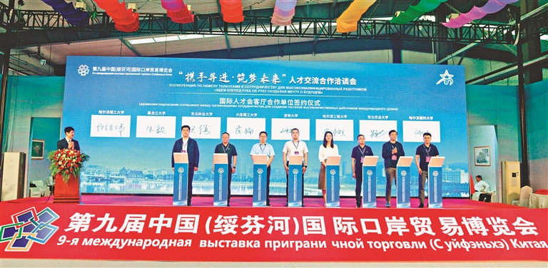 第九届中国(绥芬河)国际口岸贸易博览会上人头攒动。