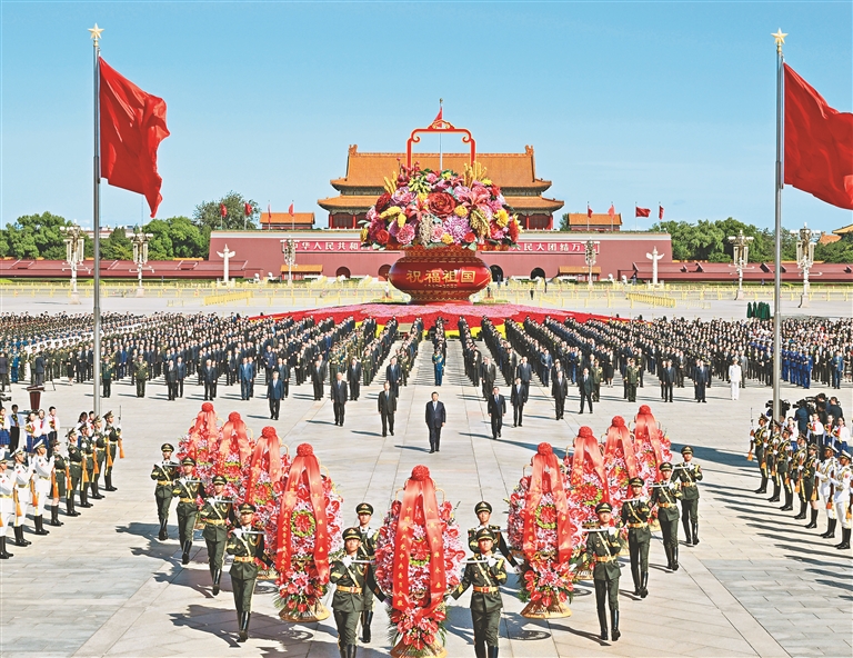 中央党政军群有关部门和北京市主要负责同志,各民主党派中央、全国工商联负责人和无党派人士代表,在京老战士、老同志和烈士亲属代表,在京功勋荣誉获得者代表,全国少数民族参观团成员,首都各界群众代表等参加了仪式。