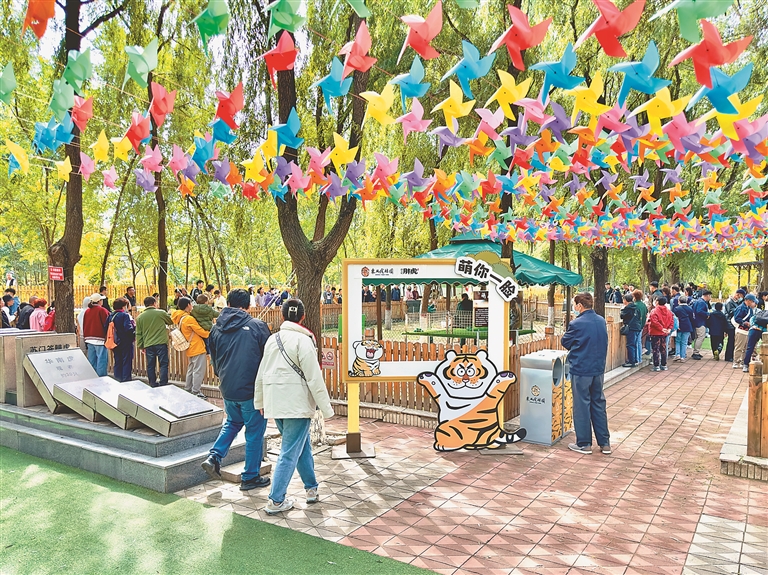 10月1日,东北虎林园内人声鼎沸,游客们排起了长长的队伍,一睹东北虎的风采。 本报见习记者 唐海兵摄