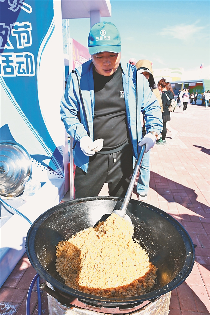莫日根大街上,极富东极特色的农特产品组成一道靓丽的风景线,南瓜、玉米、大豆、鲜果……当地群众和全市各乡镇的农民把自己的特产带到这里进行推广,产自黑龙江、乌苏里江的鱼类加工产品、当地特产的酒产品、百姓养殖的家禽产品……种类繁多,让人目不暇接。