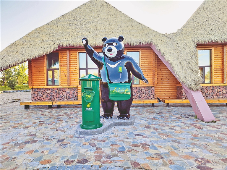 本报讯(张丹丹 记者李晶琳)“咔嚓、咔嚓”,身高3.2米的“东极”主题邮局吉祥物小熊“东吉吉”身挎绿邮包,站在邮筒旁边快乐地招手,憨态可掬的样子吸引了许多游客驻足拍照。
