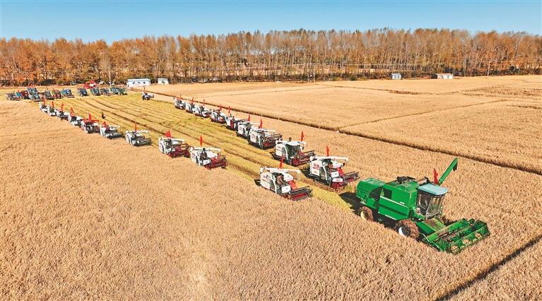 本报讯(李文浩 记者孙昊)9日,“龙江第一村”甘南县兴十四村抢抓晴好天气,全面开展水稻收获工作,确保颗粒归仓。