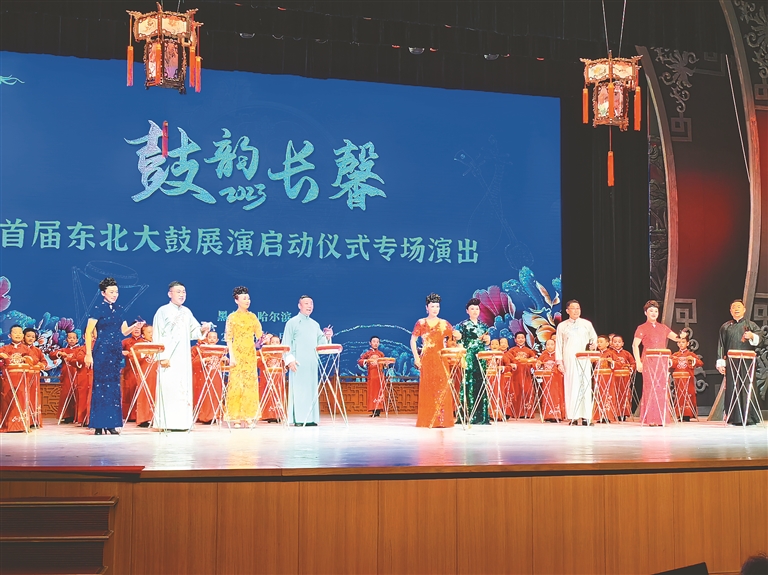 在启动仪式后进行的专场演出曲艺名家汇聚,各类传统经典曲目和优秀新创节目轮番上演。东北大鼓作为国家级非物质文化遗产,是流行在我国东北地区的一种民间说唱艺术形式,距今有300多年的历史。本次活动以“鼓韵荟冰城 说唱新时代”为主题,在接下来近一周时间内,将开展专家讲座、专题研讨会、图片展、小分队进基层展演等活动,进一步增强东北大鼓区域交流联动,让非物质文化遗产“活”起来、“火”下去。