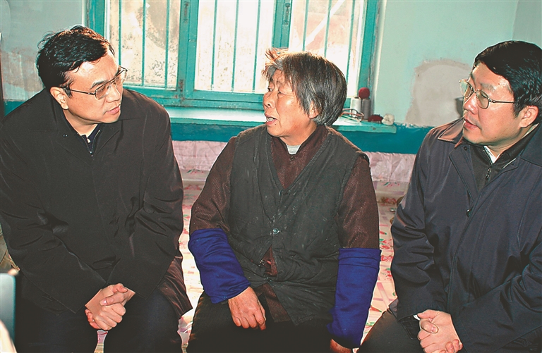图⑤:2004年12月26日,李克强同志到辽宁省抚顺市莫地沟棚户区居民王淑贞家中走访调研。 新华社发