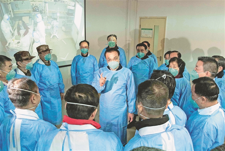 图⑿:2020年1月27日,李克强同志赴湖北省武汉市考察指导疫情防控工作,代表党中央、国务院慰问疫情防控一线的医务人员。 新华社记者 李涛摄