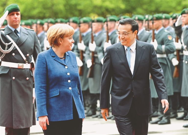 图⑥:2013年5月26日,李克强同志在柏林出席德国总理默克尔举行的欢迎仪式。 新华社记者 马占成摄
