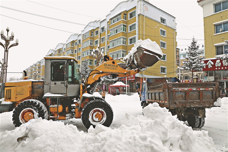 龙江森工集团林口局公司清雪车辆进行清雪作业。 本报记者 李健摄