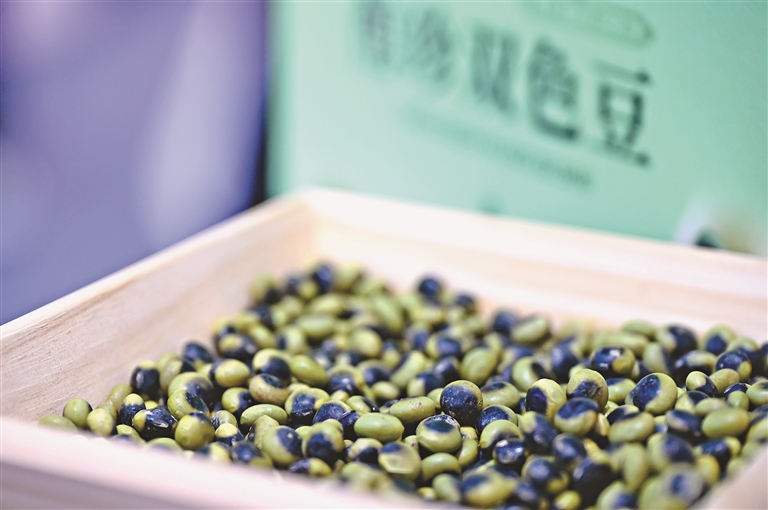 “这是我们宝清县新种植出的品种,叫五叶太极双色豆,一种源自大自然的珍稀豆种,因其独特的双色豆粒和丰富的营养成分而被称为豆类中的‘大熊猫’,豆子看着漂亮,品质也不一般。”在黑龙江展区内,宝清县海之坊农产品有限责任公司是首次参展进博会,负责人王保胜拿着豆子自豪地对参展客商介绍着。