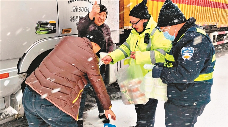 哈尔滨南收费站工作人员为司乘人员送简餐。图片由省交投集团提供