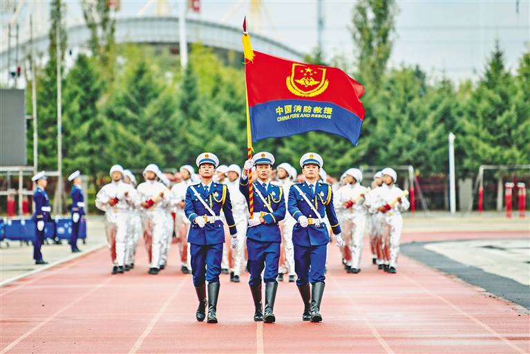 2018年11月9日,习近平总书记亲自向国家综合性消防救援队伍授旗并致训词,指引这支队伍奋进新时代、阔步新征程。