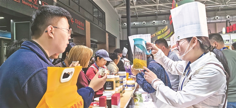 人们争相品尝“黑土优品”。本报记者 周静摄