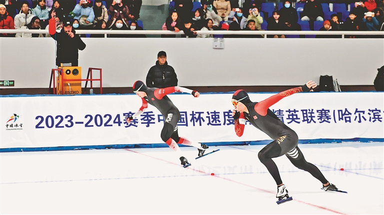 本报11日讯(记者杨镭)11日,2023~2024赛季中国杯速度滑冰精英赛(哈尔滨站)继续进行。作为高亭宇在北京冬奥会该项目夺金后参加的首场正式比赛,当天下午进行的公开组男子500米比赛引起了普遍关注。最终,高亭宇以35秒02的成绩轻松夺冠。赛后接受采访时,高亭宇表示,对他来说,重返赛场是开启了在新的冬奥周期的积累过程,他的目标是在2026年米兰冬奥会时达到最佳状态。