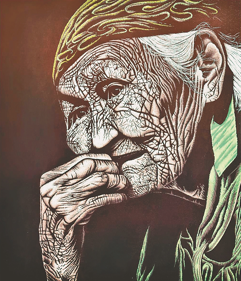 在张士勤作品《最后部落的女酋长——玛丽亚·索》中柔和而坚实的轮廓、准确生动的表情刻画,借助光线抓住人物最具表现力的瞬间,以人物和背景明暗光线的关系加以生动准确形象的刻画,使作品中的老人具有古铜质地般的脸庞自然贴切,又如雕塑一般浑厚具有永恒之美。这类作品融合了区域民众生活、狩猎、游牧、服饰等等综合艺术形式,在保留民族特点的基础上,真正实现现代性,由此可见木刻版画的发展、创新、继承也是与时俱进的。
