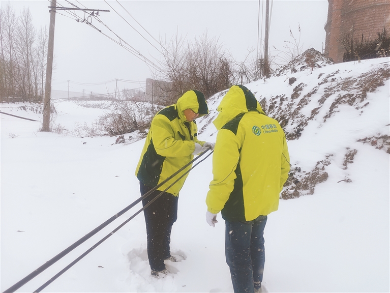 大雪、寒意席卷每一个角落,移动抢修人员仍然冒雪前行,克服气温低、天黑、路滑难行等困难,有条不紊地开展网络通信保障工作。尽管降雪量大、积雪明显,但黑龙江移动网络保障人员积极抢修,尽最大努力降低重大故障发生率,确保网络运行平稳。