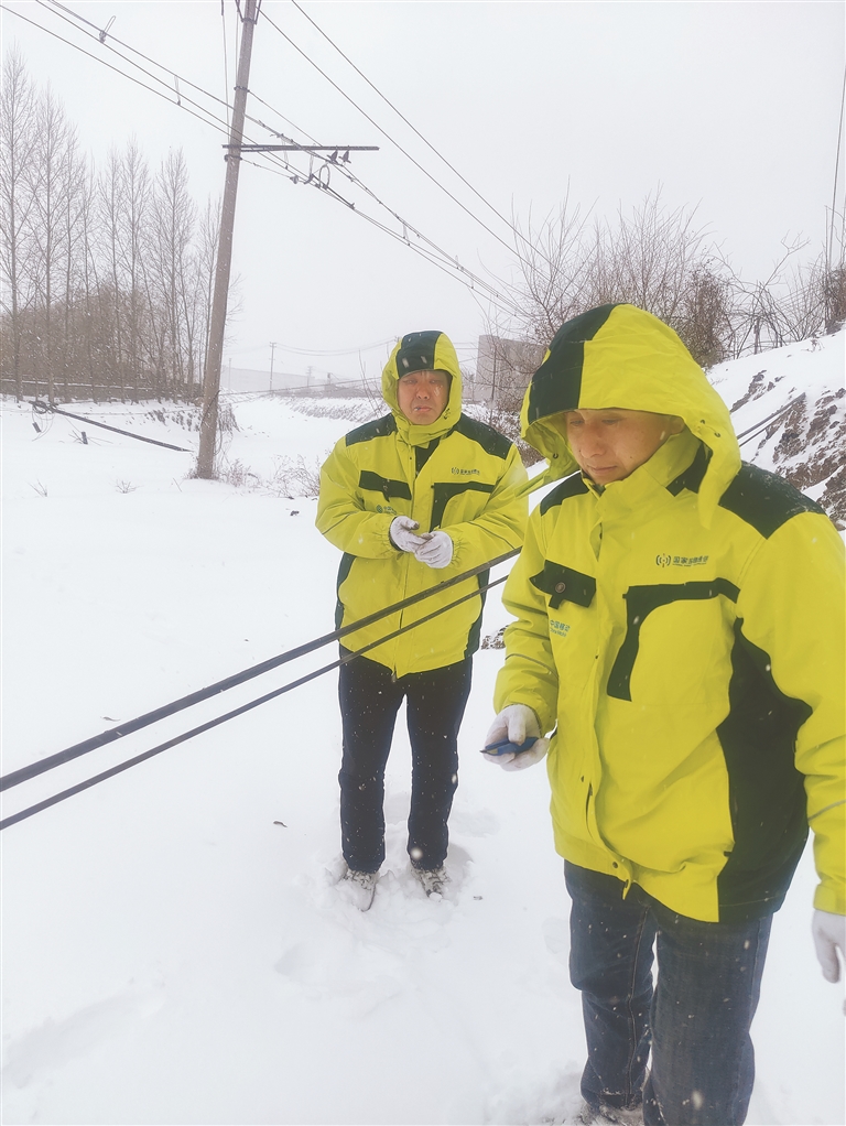 经现场勘查,故障为大雪导致,直接影响周边居民的正常通信。情况紧急,宾县分公司的郭松曲不顾刺骨的寒风、湿滑的地面,快速进入工作状态,协调沟通、处理故障。平日里简单的操作因风雪而变得异常困难,三个多小时后,抢修完毕,他也成了“雪人”,羽绒服被雪水浸透。