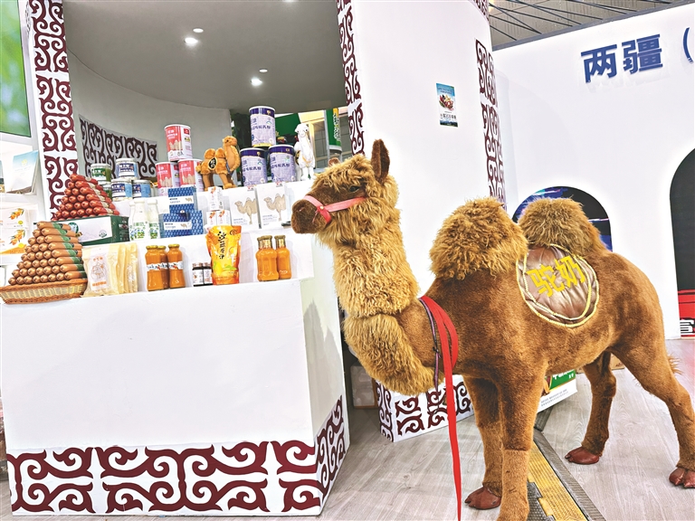 香甜的哈密瓜、美味的葡萄干、营养价值不菲的驼奶和刚刚“上线”的新疆三文鱼,只要走进新疆展馆,这些美味都能尝得到。