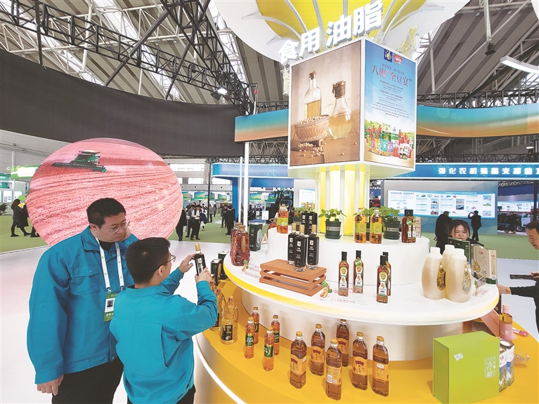 在大豆板块黑龙江展区,记者注意到这里将大豆的用途归纳的明明白白,蛋白磷脂、精细化工、豆浆豆粉、发酵制品……每个区域摆放着代表产品,并附有详细的介绍。