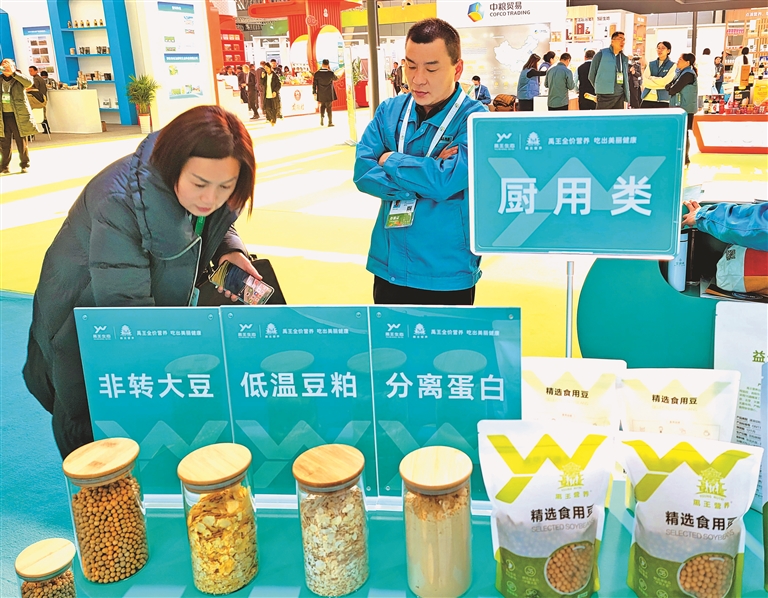 参展商在山东禹王生态食业有限公司展台前。本报记者 李天池摄
