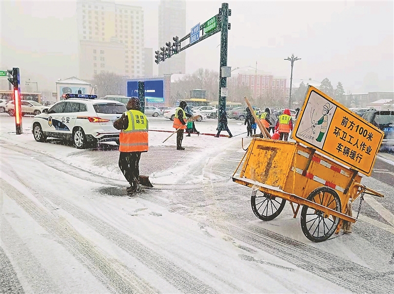 本报22日讯(刘振东 记者刘瑞)22日清晨,哈尔滨市迎来新一轮强降雪天气。为保障交通和市民出行安全,哈市清冰雪大军以雪为令,第一时间开展清冰雪作业。