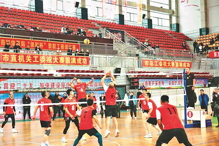 近日,双鸭山市教体局举办“中国梦·劳动美——凝心铸魂跟党走 团结奋斗新征程”2023年“体彩杯”教职工排球比赛。比赛设置了教工男子组和教工女子组两个组别,由324名排球队员组成的27支队伍参赛。